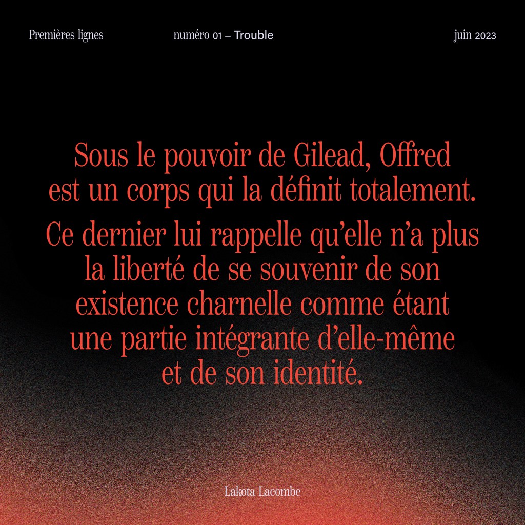 Dans The Handmaid’s Tale, Margaret Atwood présente une société dans laquelle un État totalitaire a pris le contrôle de sa population. Sous ce régime, les sujets perdent progressivement la majorité de leurs droits et de leurs repères. Après la chute drastique de la fécondité et la montée des tensions politiques dans la société, un groupe d’extrême droite idéologique et religieuse prend le pouvoir et fonde la république de Gilead. Les sujets sont pour la plupart dépouillés de leurs droits, séparés de leurs familles, isolés les uns des autres. De même, ces changements politiques et sociaux réduisent la protagoniste du récit à sa fertilité : dans la nouvelle société, elle n’a plus qu’une seule fonction ; enfanter. À cet effet, le régime totalitaire doit détruire ou effacer tous les liens qu’entretiennent les sujets avec le temps qui précède le changement de régime afin d’établir son pouvoir. Or, bien que le gouvernement met en place des dispositifs et des institutions pour effacer la mémoire des sujets, les individus se souviennent malgré tout d’un passé différent. En ce sens, cet article entend démontrer que la mémoire d’Offred est mise en scène de façon à mettre de l’avant les usages politiques de la mémoire et de l’oubli dans le régime dystopique de Margaret Atwood. Ces usages sont retraçables dans les trois temporalités du roman : dans le temps présent, où l’État de Gilead met en place des dispositifs qui démontrent sa dépendance de l’amnésie sociale ; dans le passé, où se réfugie la narratrice et où elle trouve l’étincelle de sa résistance ; dans le futur après la chute de Gilead, où des chercheurs reconstruisent l’histoire de Gilead et de ses sujets à partir du peu d’information laissée par la République.