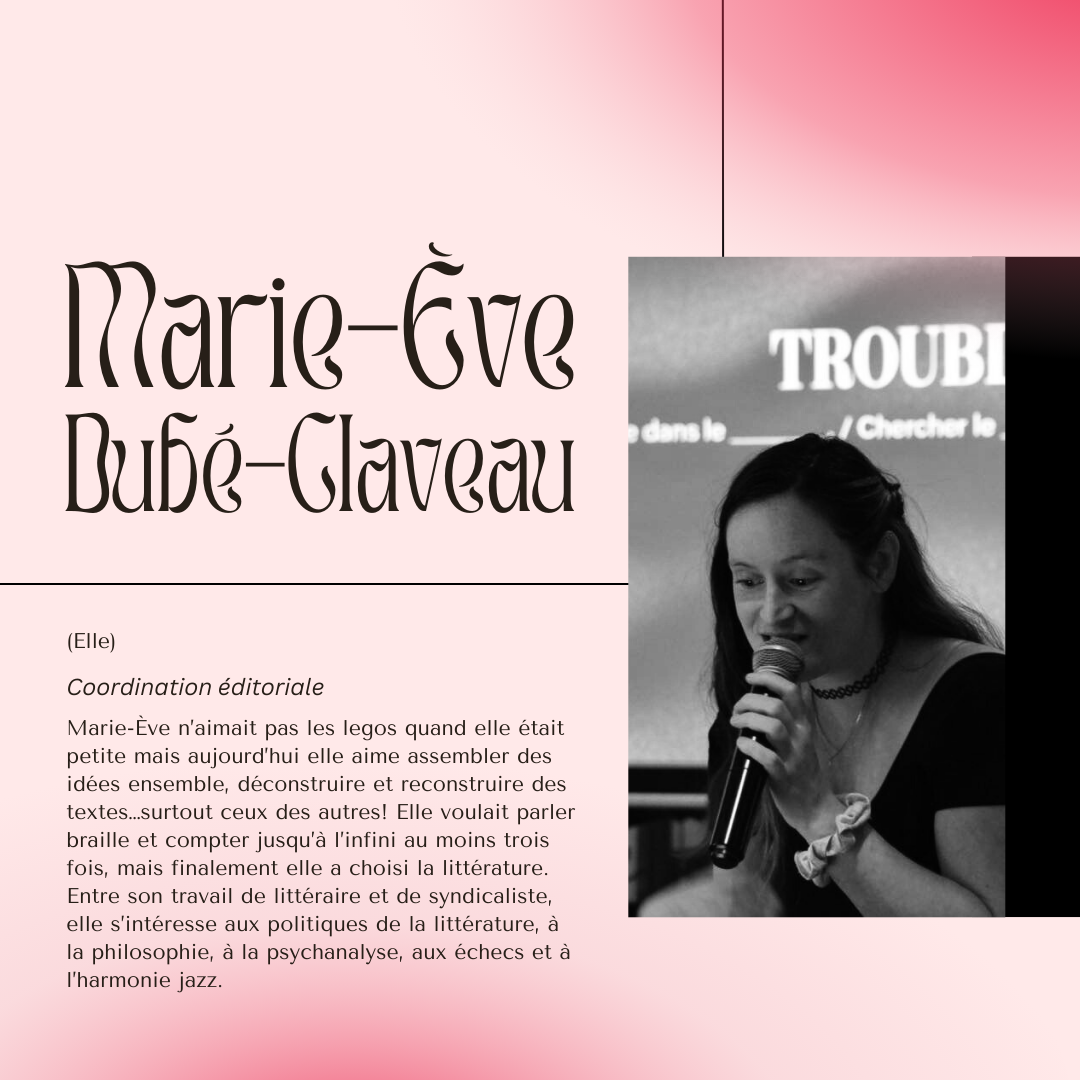 Marie-Ève Dubé-Claveau (elle) – Coordination éditoriale