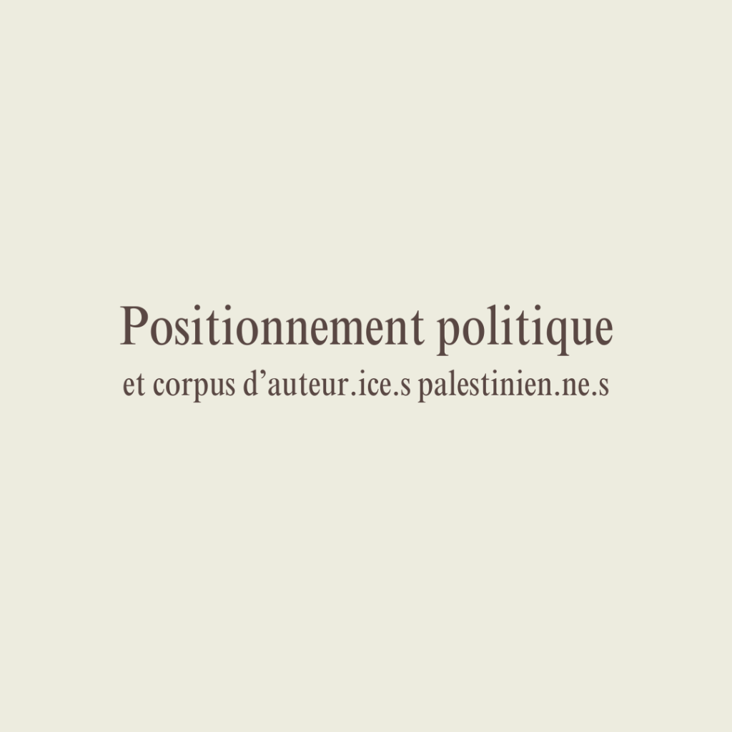 POSITIONNEMENT POLITIQUE ET CORPUS NON-EXHAUSTIF D’AUTEUR.ICE.S PALESTINIEN.NE.S
