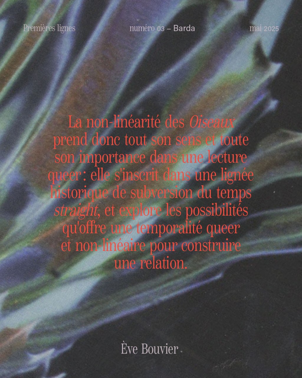 Rouge, Bleu et arc-en-ciel : une analyse queer des « Oiseaux du temps » – Ève Bouvier